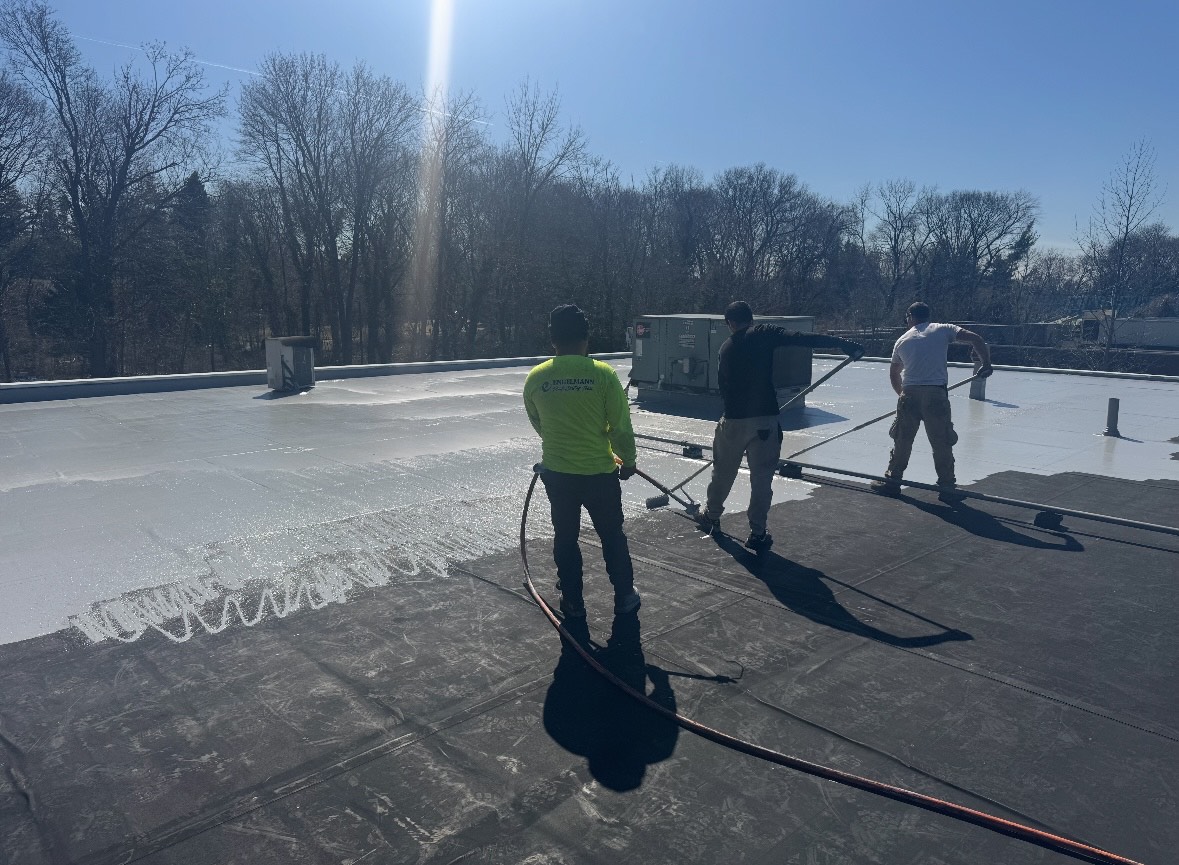 Roof leak into the computer room led to a complete restoration using GAF Roof Coatings. Silicone roof coatings stopped the leaks with a 20 year labor and material warranty.