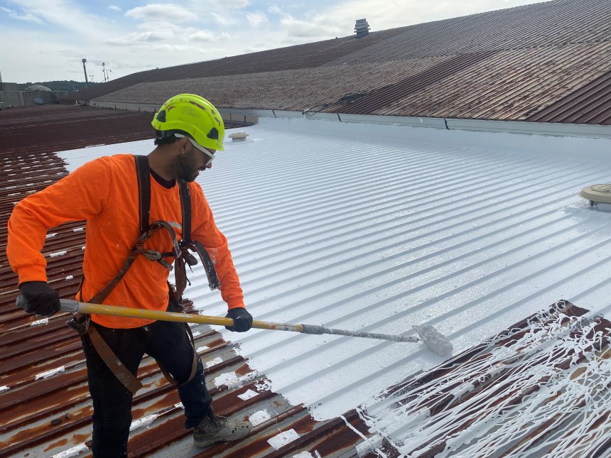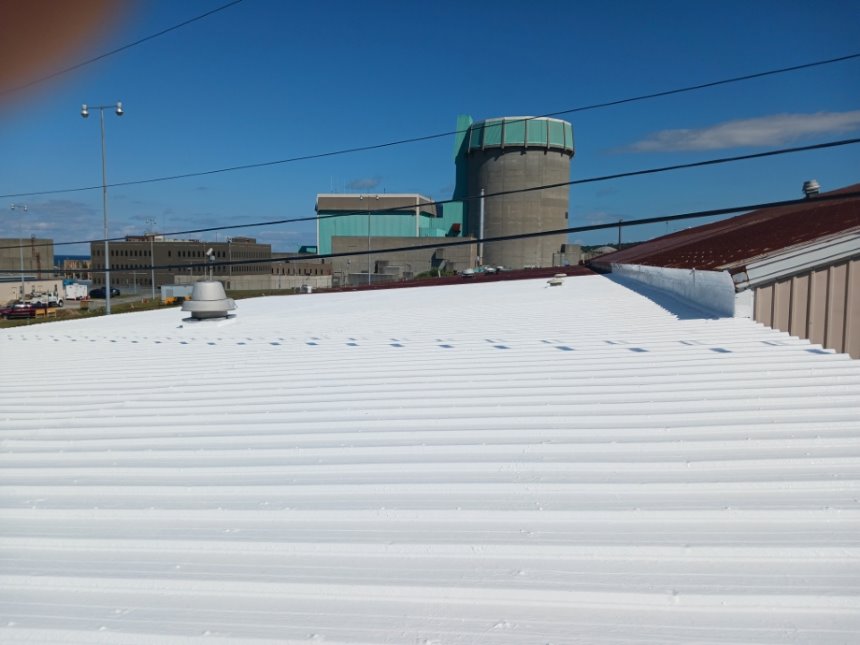 At the former Shoreham Nuclear Power Plant, the original "temporary" metal roofs had deteriorated badly after decades of neglect. We replaced sections of rusted metal, then restored the entire surface with a GE silicone coating system under a 20-year warranty. This work saved the client the cost of full replacement while delivering new-roof performance and protection.