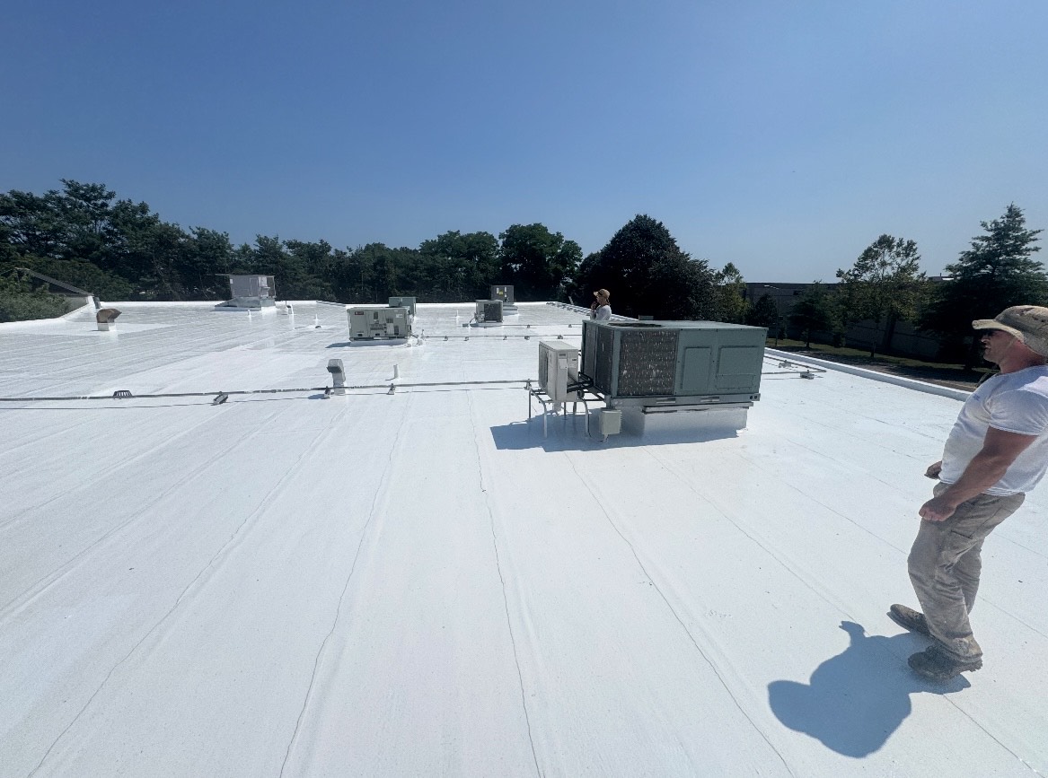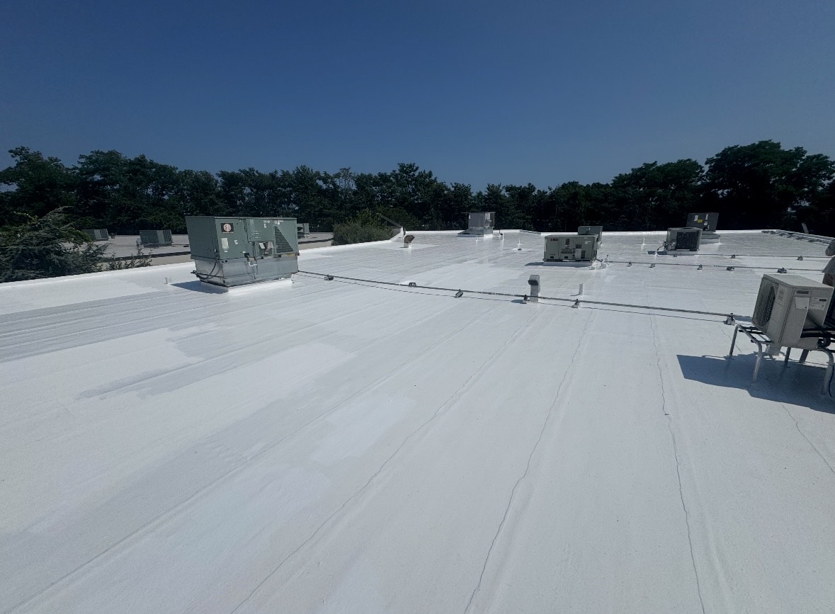 This roof was leaking in several areas, affecting offices below. The building had previously been capped with a second roof, but workmanship issues in that installation caused system failures. With a legal third layer of roofing, we encapsulated the existing system- no tear- off required- and provided a 20 year manufacturer warranty. This project highlights the efficiency and cost savings of our legal third layer roofing approach.